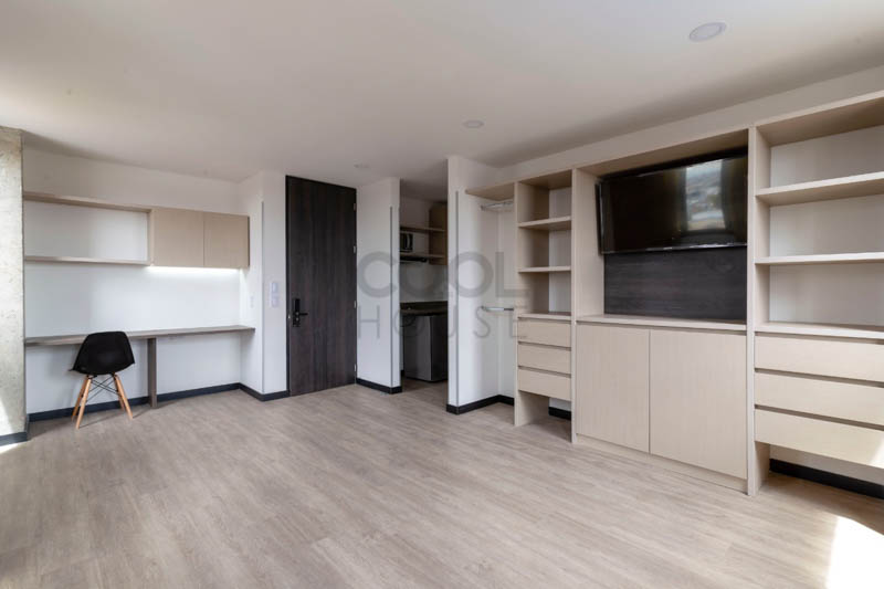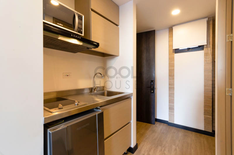 This apartment has: kitchen, bathroom, 1 bedroom, furnished and includes: Administration, Water, Electricity, Gas, Unlimited Wifi, Coworking, Gym, 24hrs Security, events, unlimited use of common areas.