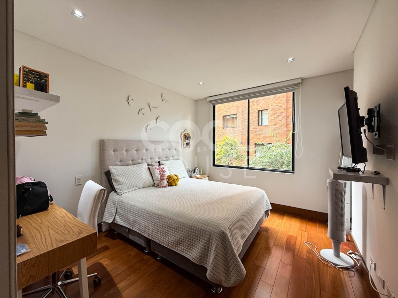 Apartment for sale for rent in Los Rosales with views of the city and hills. Very well located between Cra 1 East and Calle 70A. It is located near restaurants and shopping centers. The complex has a boiler, electric generator, reserve water tank, community room, gym, escort room, children’s area, 24-hour surveillance and visitor parking. Immediate availability. Rented at Canon $11,500,000 including admon