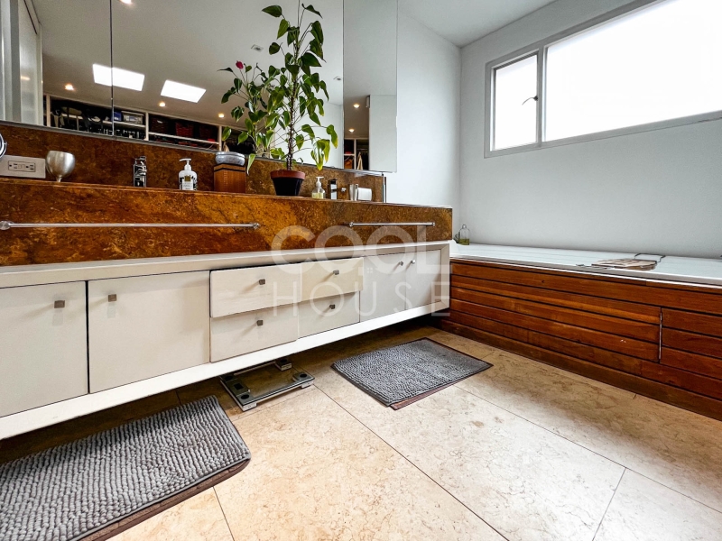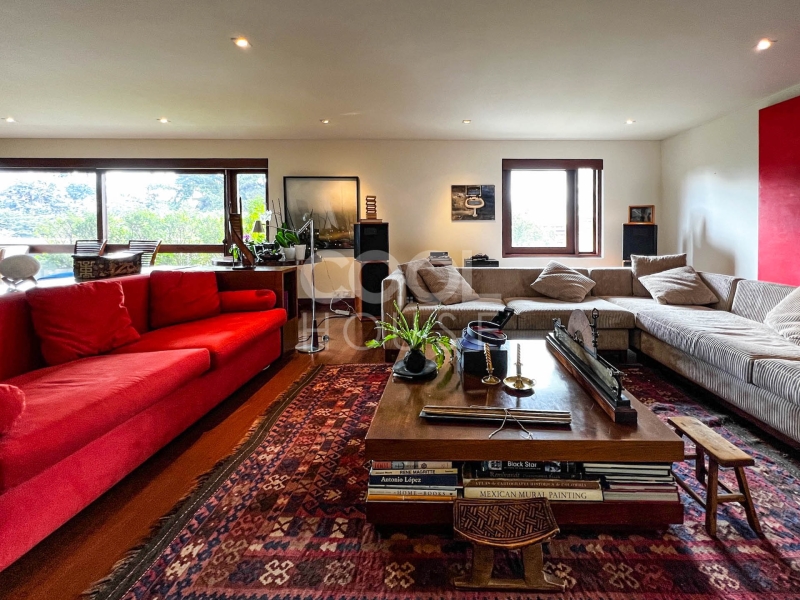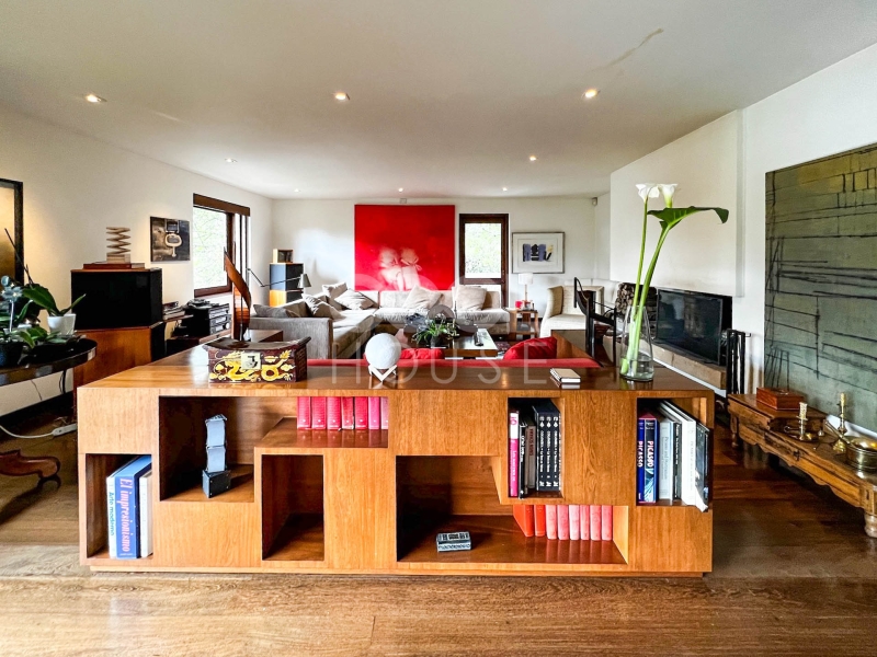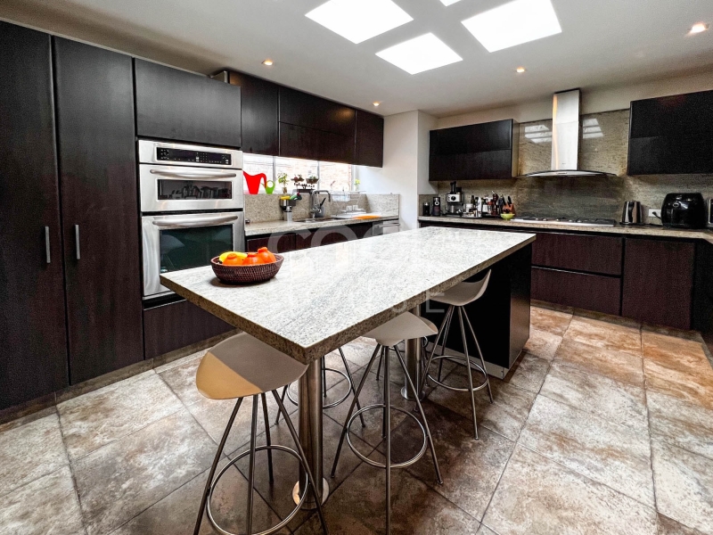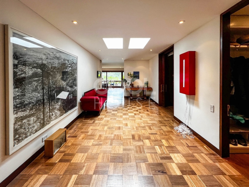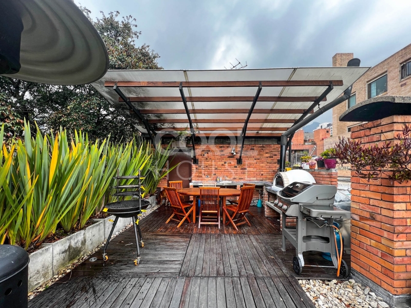 Duplex apartment with terrace for sale in El Nogal. One of the most beautiful apartments in Bogota, overlooking the gardens of the modern gymnasium, the trees of Calle 76, and the hills of the east (Calle 76 corner carrera 9). Built in 1960 with plans by architects Pepe Obregón and Alberto Sanz de Santamaría, and remodeled in 2010 by architect Miguel Soto, it is a penthouse full of light, full floor, has 410 meters, 5 bedrooms plus independent studio, 5 bathrooms, and three balconies. Additionally, he owns the 410 meters of the roof in which there is a 150-meter wooden deck with pergola, BBQ and wood oven. It is located near restaurants and shopping centers. The building has a BBQ area, 24-hour security and visitor parking.