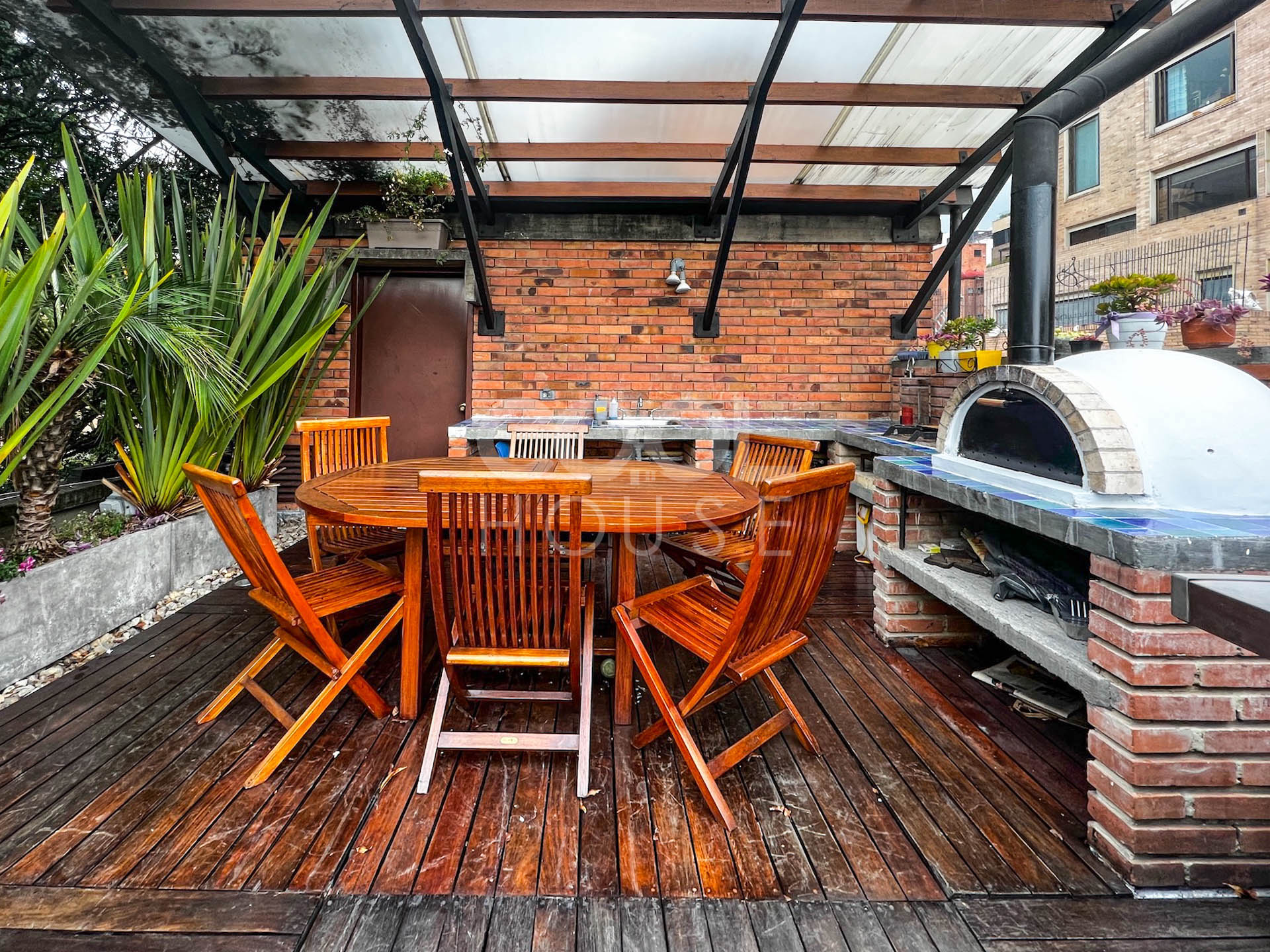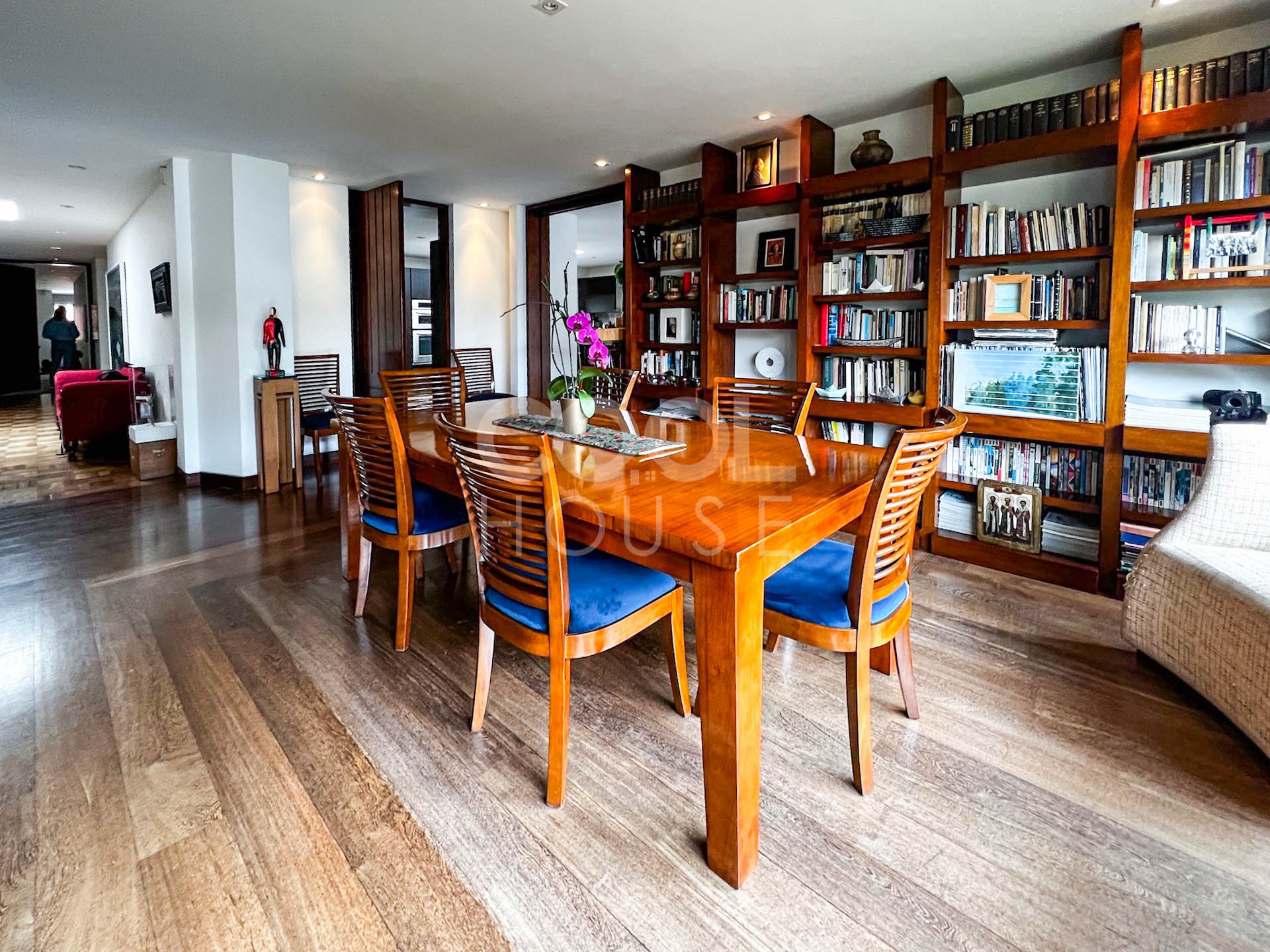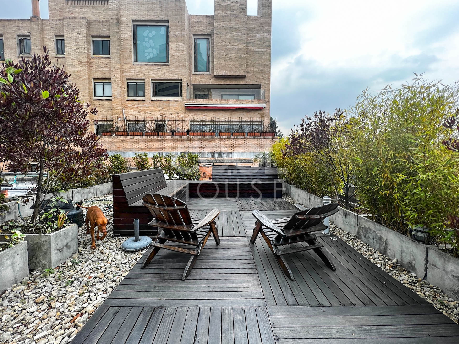 Duplex apartment with terrace for sale in El Nogal. One of the most beautiful apartments in Bogota, overlooking the gardens of the modern gymnasium, the trees of Calle 76, and the hills of the east (Calle 76 corner carrera 9). Built in 1960 with plans by architects Pepe Obregón and Alberto Sanz de Santamaría, and remodeled in 2010 by architect Miguel Soto, it is a penthouse full of light, full floor, has 410 meters, 5 bedrooms plus independent studio, 5 bathrooms, and three balconies. Additionally, he owns the 410 meters of the roof in which there is a 150-meter wooden deck with pergola, BBQ and wood oven. It is located near restaurants and shopping centers. The building has a BBQ area, 24-hour security and visitor parking.