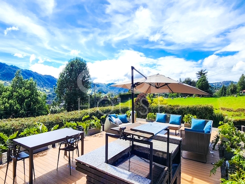 Casa Dúplex con terraza en venta o arriendo en La Calera (3). La casa cuenta con sala comedor amplia con chimenea a gas y salida a una terraza espectacular con una vista unica, calefacción, jacuzzi. El conjunto cuenta con planta eléctrica, cancha de tenis, cancha mini fútbol, capilla, zona infantil, lago, pozo séptico, parqueadero de visitantes y vigilancia 24 horas. Disponibilidad inmediata.